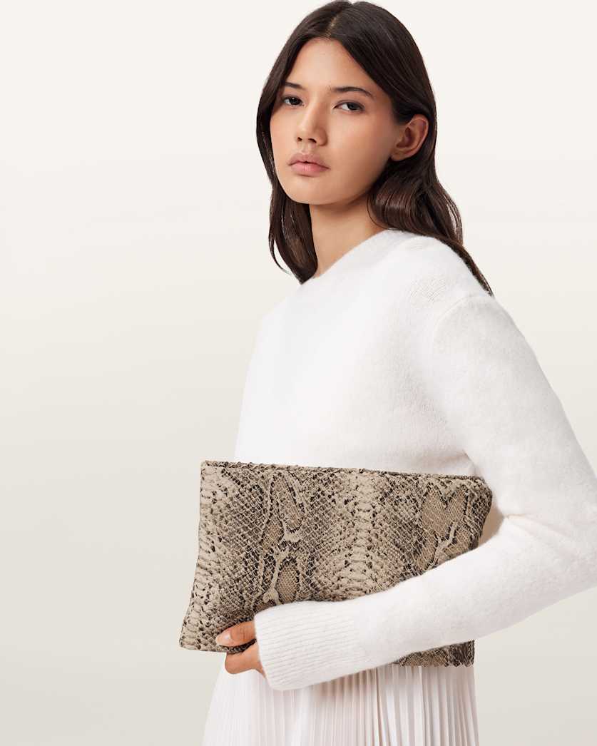 Bettina Leather Snake Clutch Bag