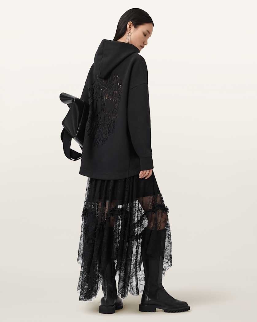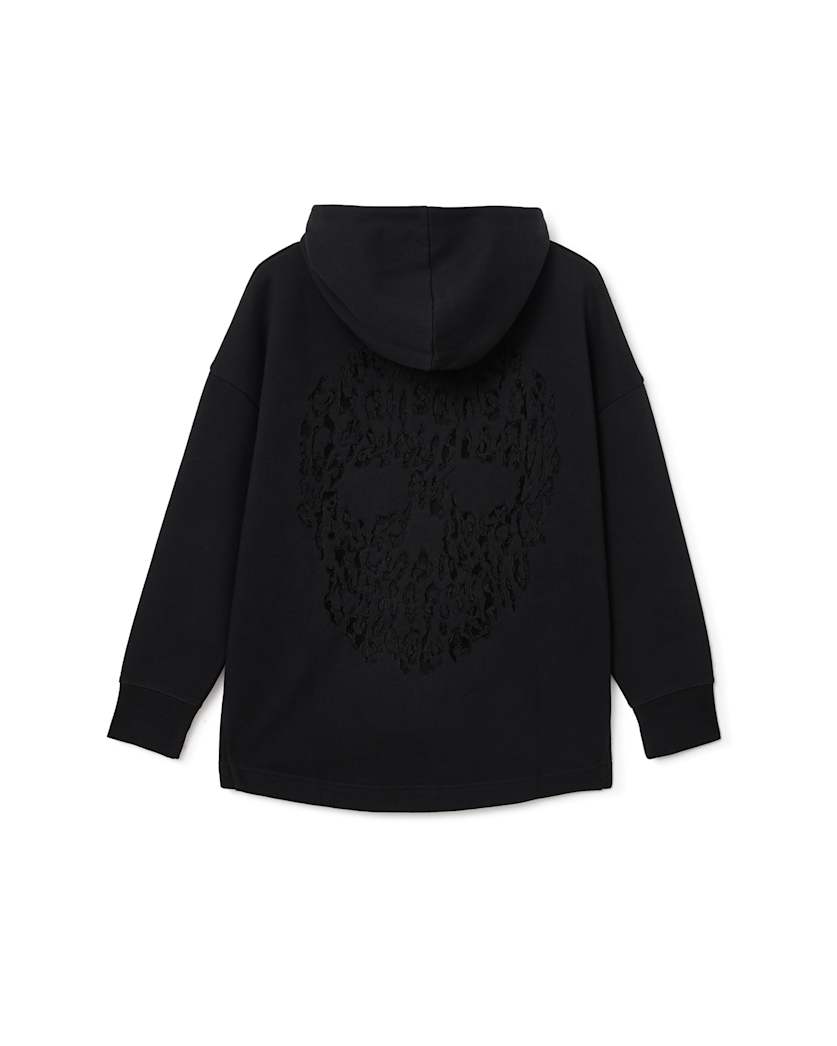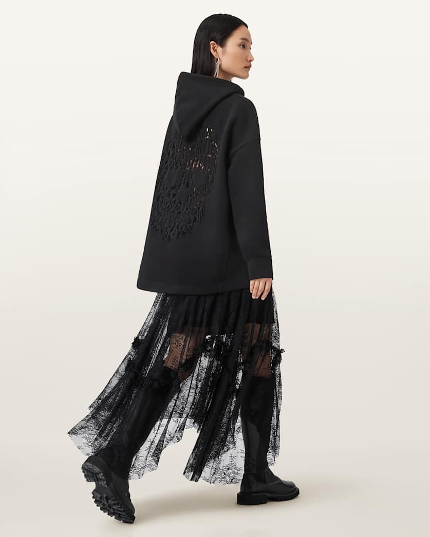An oversized hoodie isn’t just for comfort, it’s a fashion statement. Emblazoned with an eye-catching skull graphic, style this one with a lace skirt and your favourite boots for a standout look.