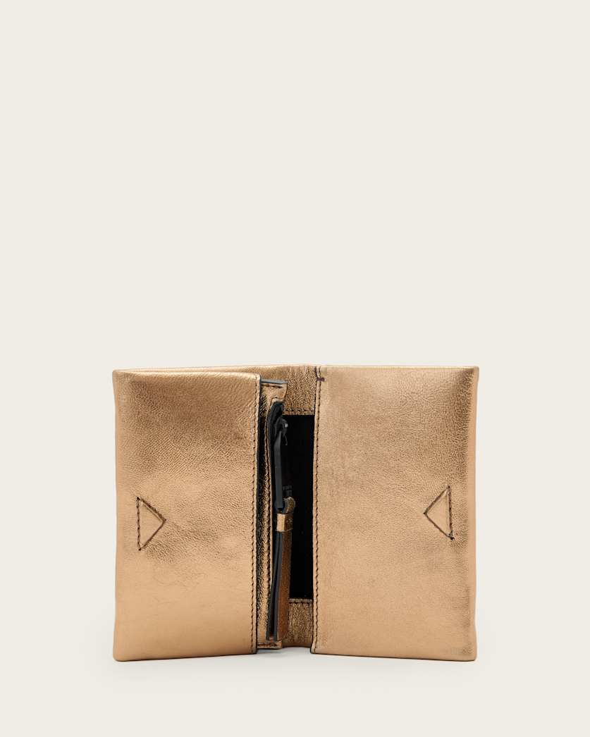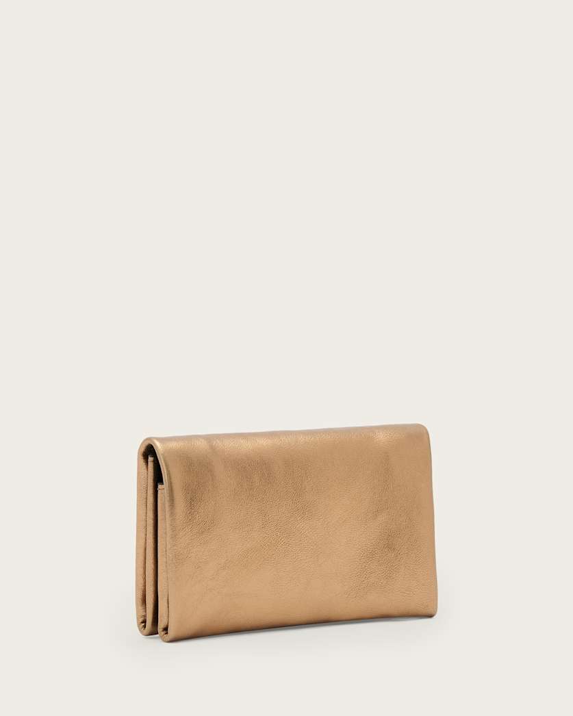 Sleek and compact. The Harluna Wallet is made from super-soft metallic leather to a fold-over shape with multiple interior slots. Of course, you'll find our signature embossed on the front.