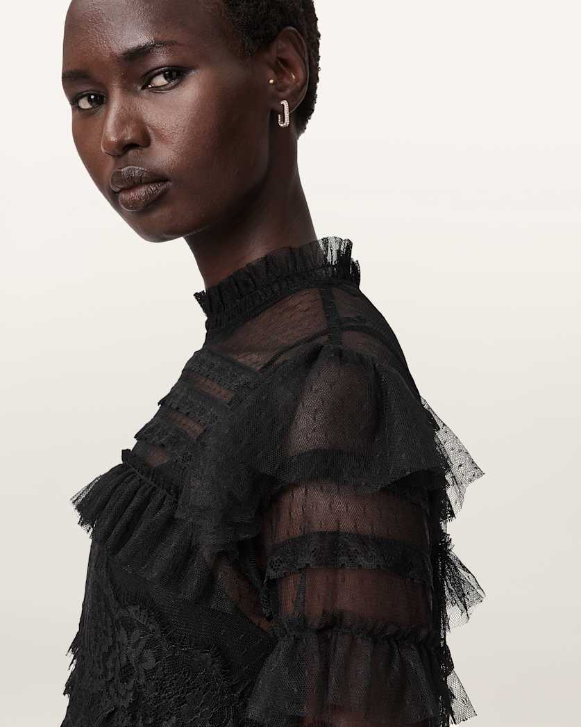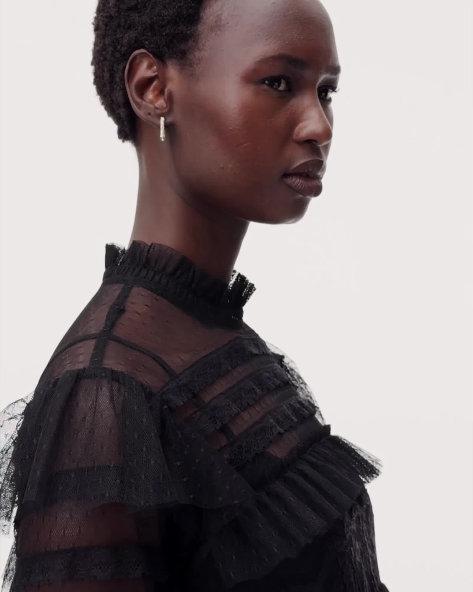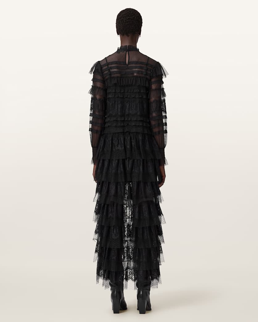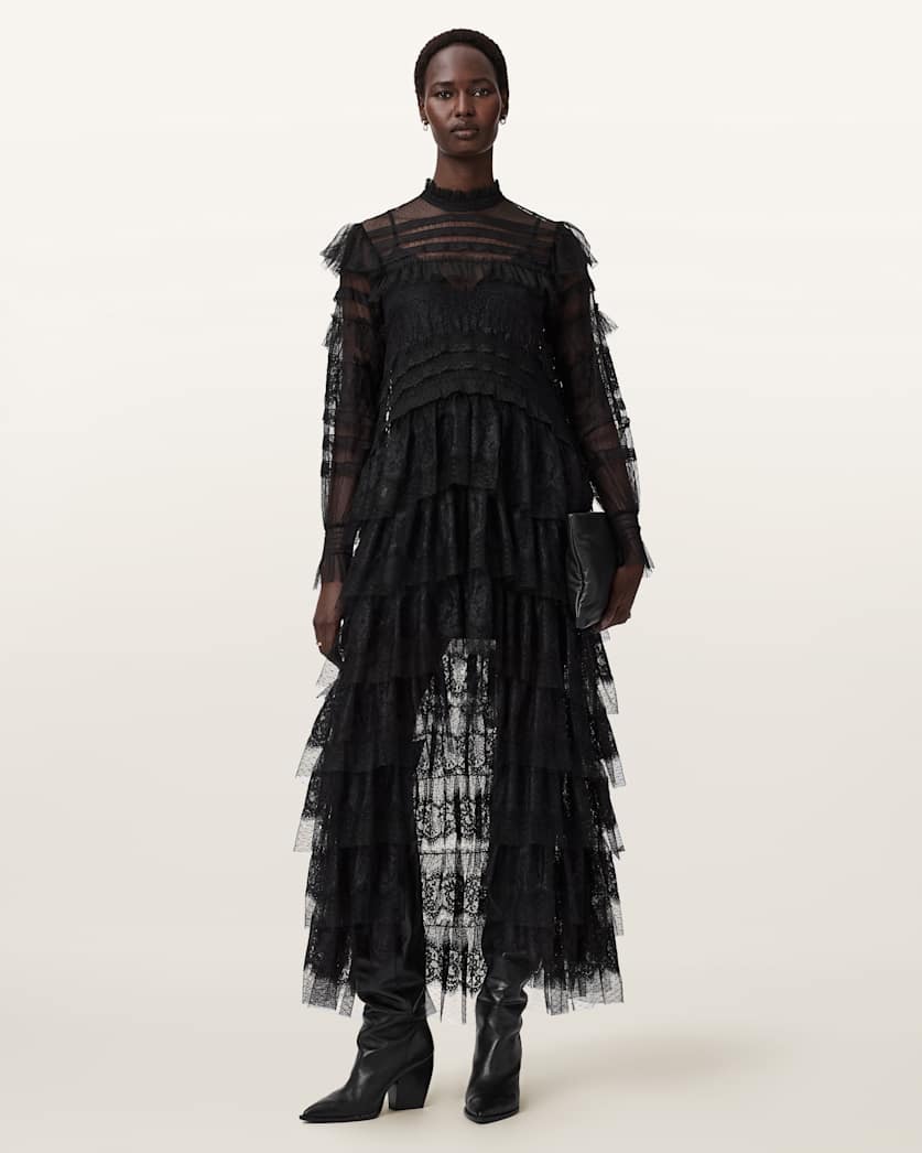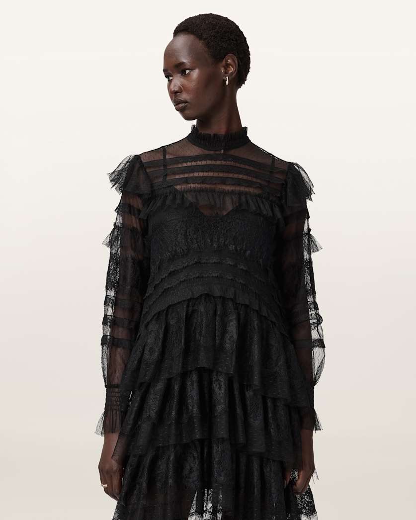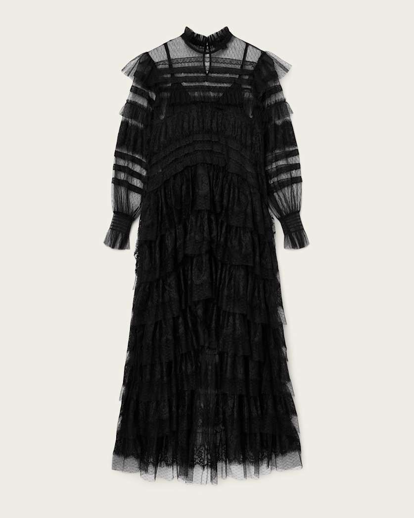 We're thinking... ruffles... and lace. The Cavarly Dress amplifies that feminine feeling, only this time with a gothic twist. A bit of drama, but always playful, this statement dress goes from season to season.