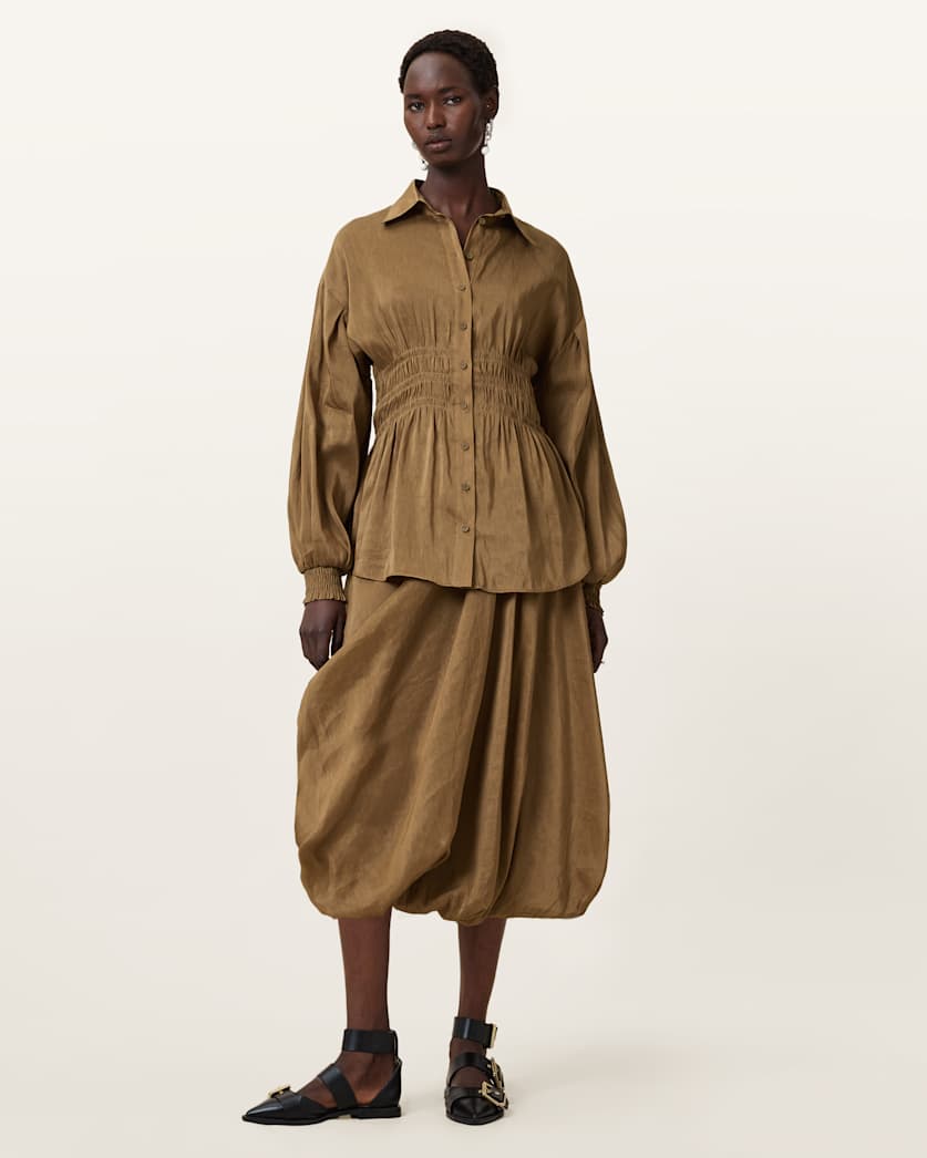 Some shirts exude elegance. Some shirts are made for versatility. Our Staci Linen Shirt does both. Match with the Nia Skirt to complete the look.
