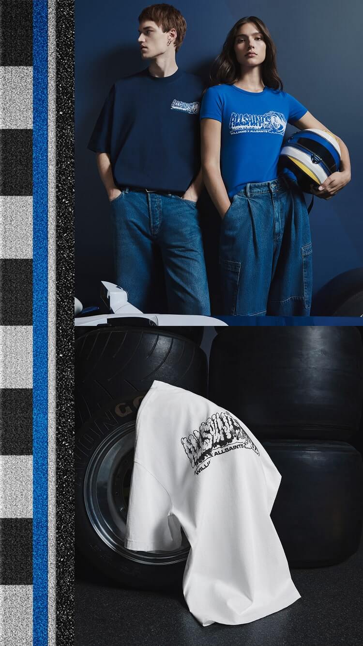 Introducing our limited-edition collaboration with legendary F1 team Atlassian Williams Racing. Fusing AllSaints’ signature rebellious style with the heritage of motorsport, the capsule features utility outerwear and elevated essentials inspired by team uniforms and the sleek aesthetics of the track. Get ready to switch your wardrobe up a gear.