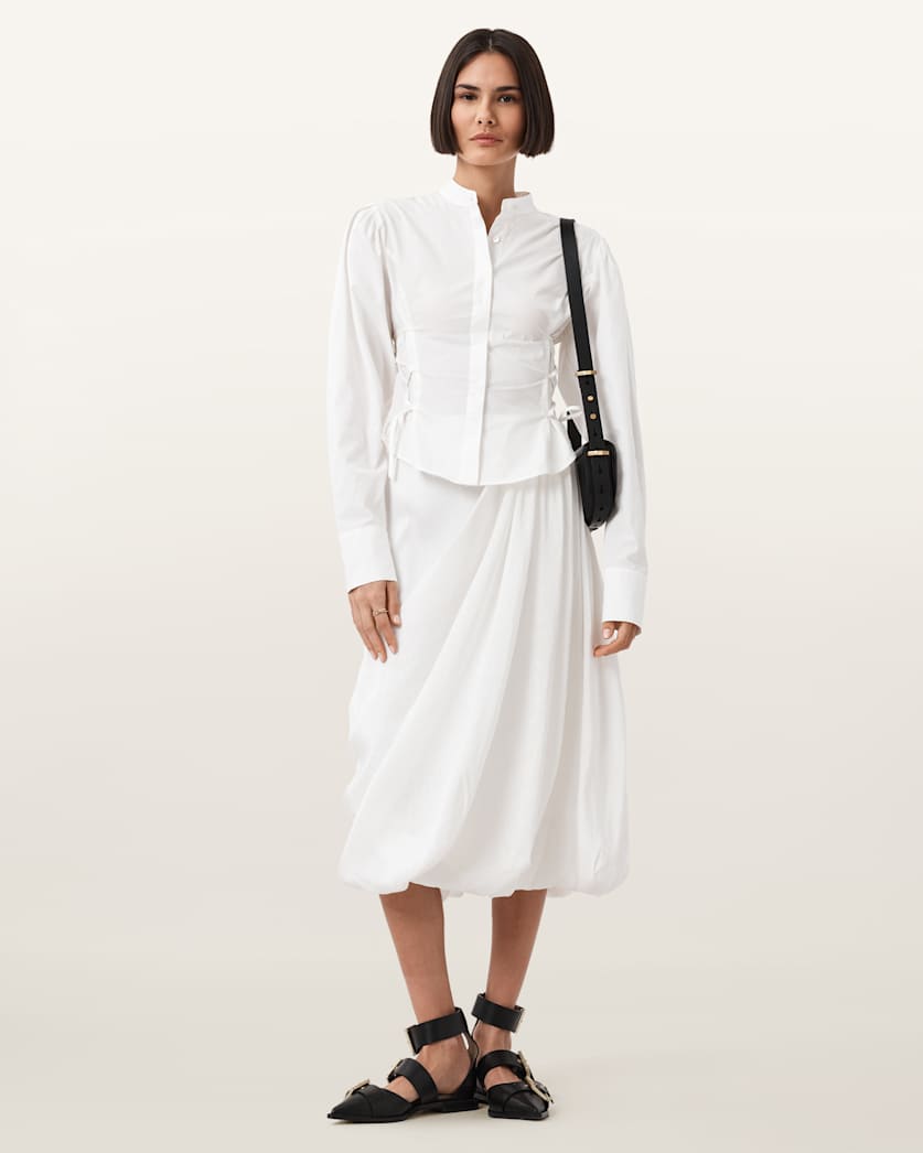 Evanna by name, elegant by nature. Lace-up fitted shirts like this are made for cocktails on summer evenings at your favourite rooftop bar.