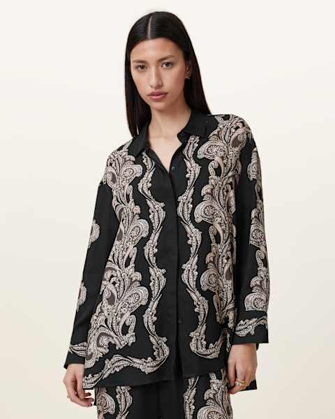 Go with the flow in the Tyler Trousers. Made from a silk-blend fabric, the straight-leg silhouette is easy to wear. Decorated with our new season artwork and lace trim detail down the sides. The fit is completed with an elasticated drawcord and two pockets - wear with a bodysuit or the matching shirt for an easy day-to-night look.