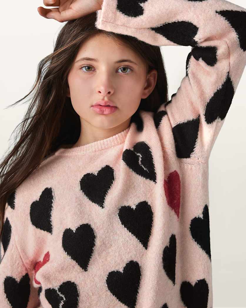 Check out this charming smALLSAINTS Amore Heart Knitted Jumper, a cosy knit they'll love. Playful with an edgy twist to the sweet design. Styled with a classic crew neck and long sleeves, this jumper is perfect for adding a fun statement piece to their wardrobe while keeping them warm and comfortable.