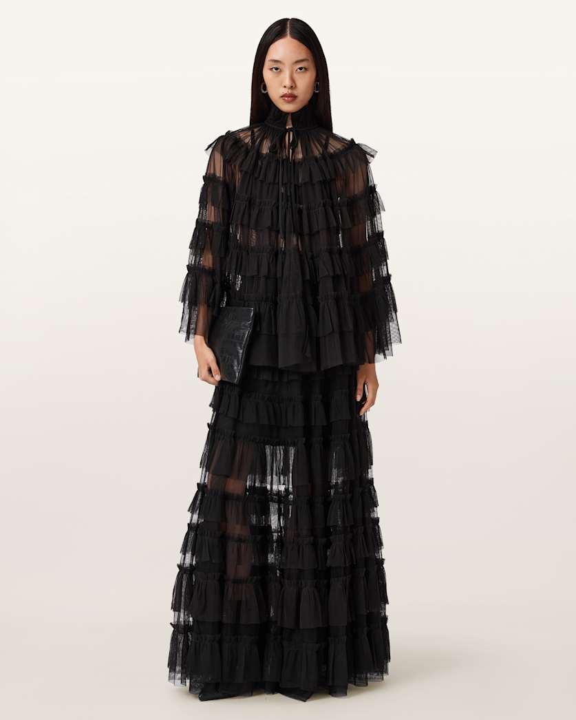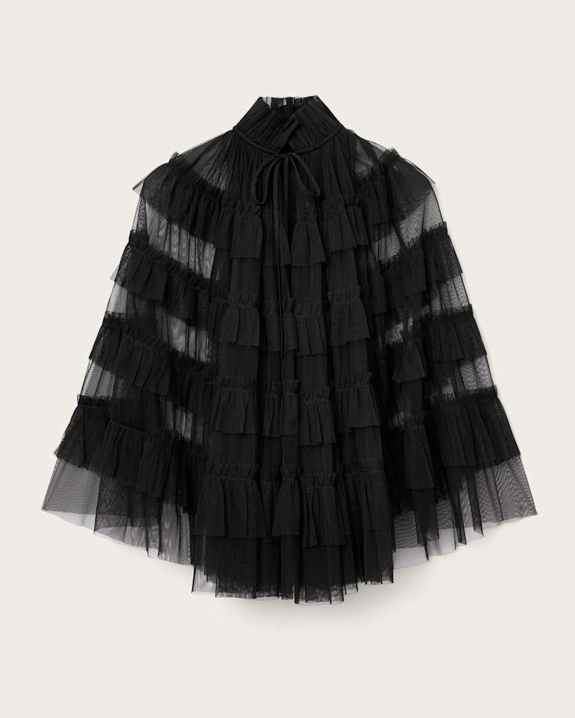 Playful ruffles with a gothic edge, the Aude Cape is a dark horse for your upcoming outfit for any parties this season.