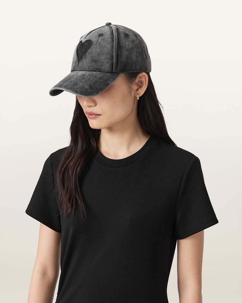Baseball caps remain a staple. It’s a classic shape, with our name embroidered in a dripping heart – easy styling.