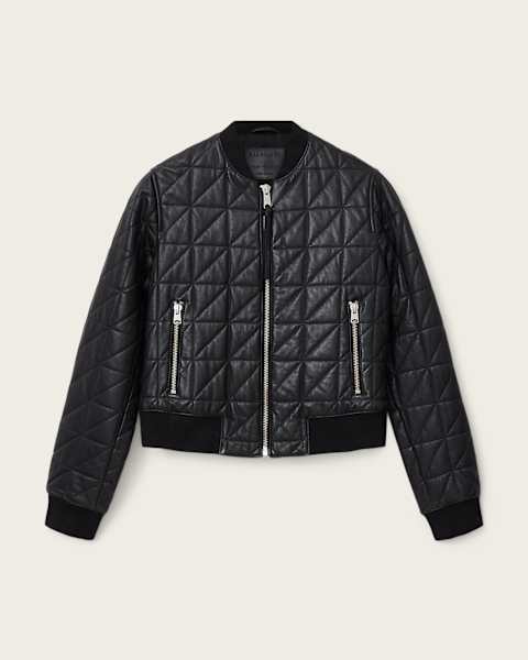Two styles come together. The Paulah Coat has a classic double-breasted silhouette. We've added bomber-jacket style sleeves – they're crafted from a responsibly sourced yarn made from regenerated waste. That's the AllSaints twist.