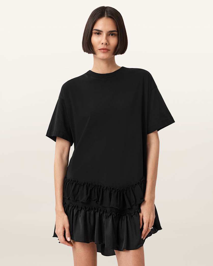 Jersey at the top, frills at the bottom. Our Feyre Dress was made for late-night parties and dancefloor sagas. Just add biker boots.