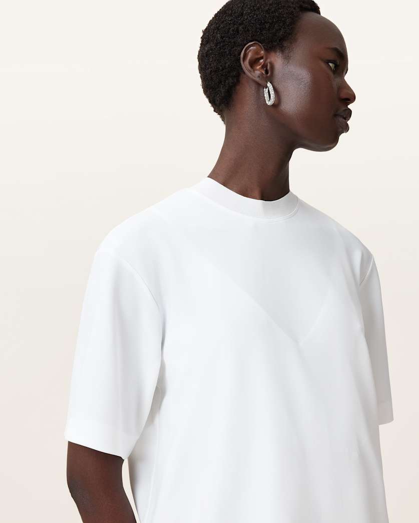 - Tee: Body: 95% recycled polyester, 5% elastane. Rib: 68% viscose, 30% polyamide, 2% elastane