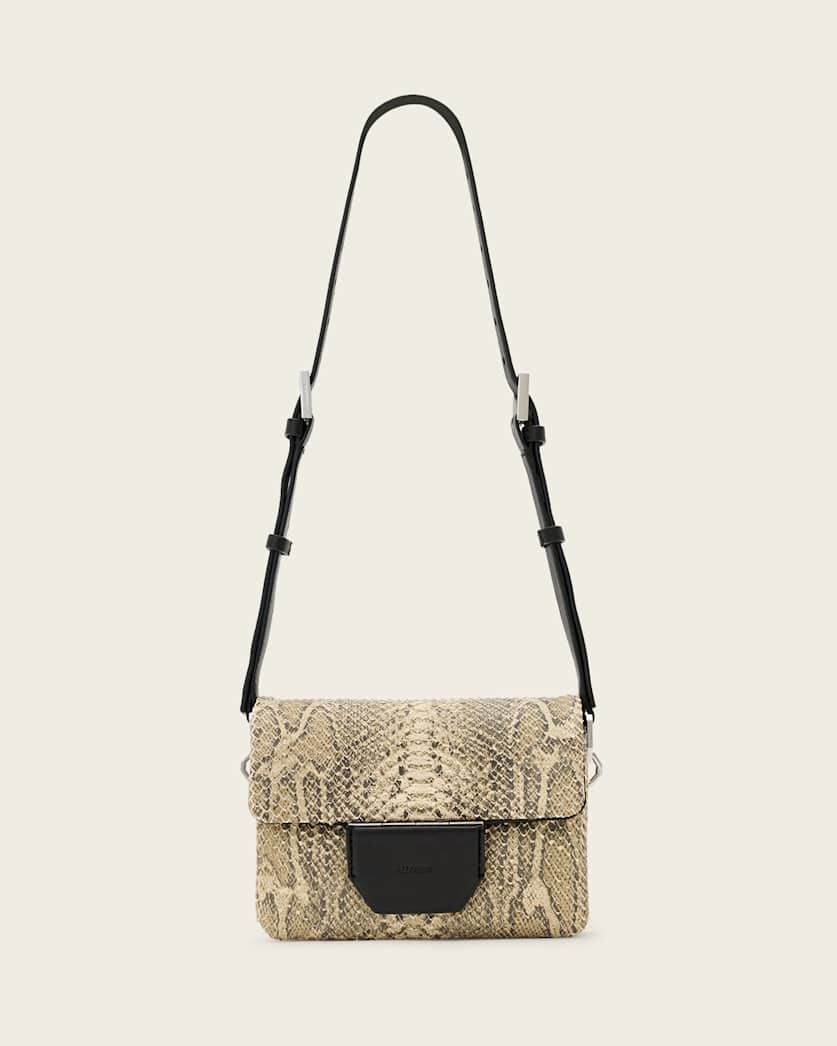 A new shape you didn't know you needed. The Jupiter Bag is compact with a magnetic closure. Complete with our hexagon branded patch – this is an update to classic AllSaints styling.