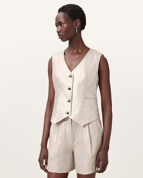 Cool tailoring has entered the chat. Meet the Averie Shorts. Crafted from super lightweight linen with a silver coated finish, they're cut to an easy relaxed fit – pair it with the matching blazer and you're set.