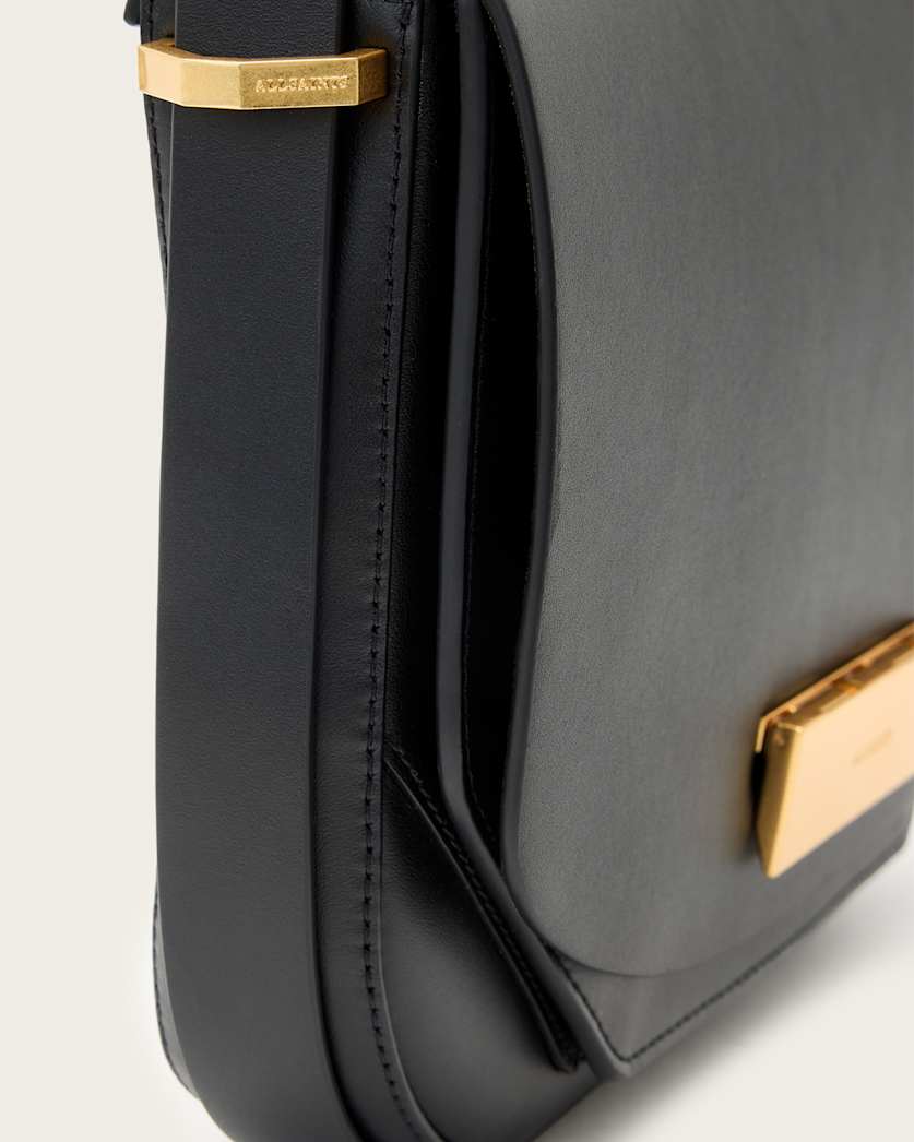 A new shape you didn't know you needed. The Etta Satchel Bag is a compact shape with lock closure. Adjust the strap to ensure a comfortable fit. This is AllSaints styling.