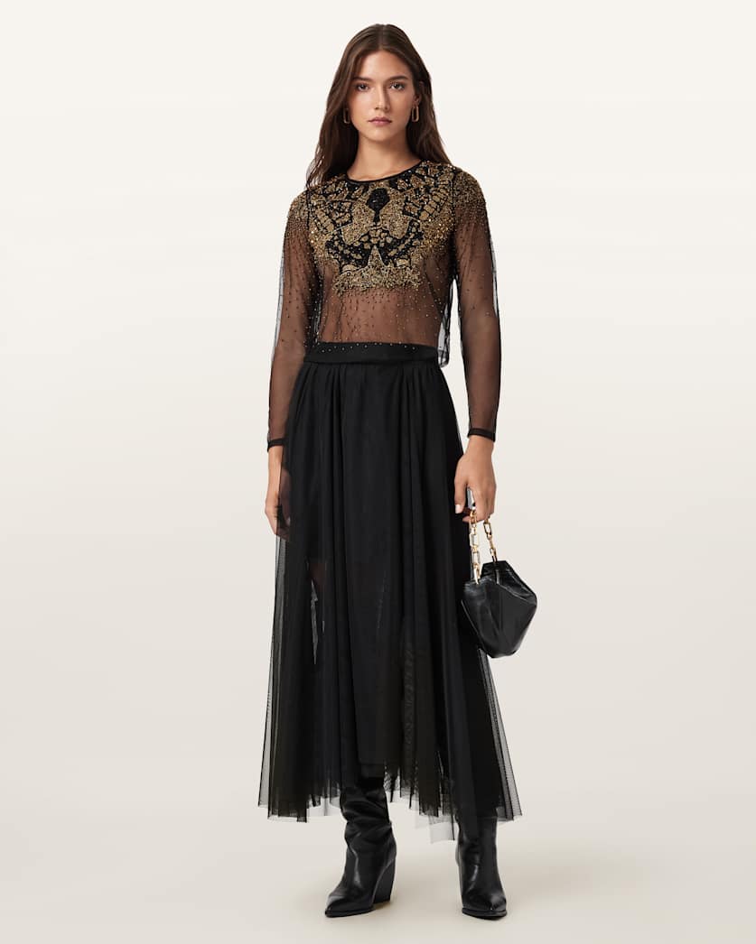 The skirt made for late-night dance floors, our Ally Tulle Midi is the gothic-inspired piece your event wear is calling out for.
