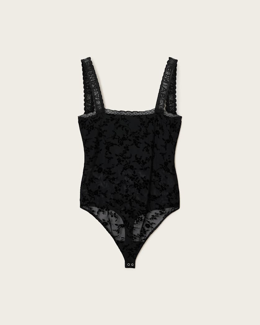 Trousers or skirts - the Charli Bodysuit works perfect with both. With black branded lace detailing across the front and back neckline in typical AllSaints fashion.
