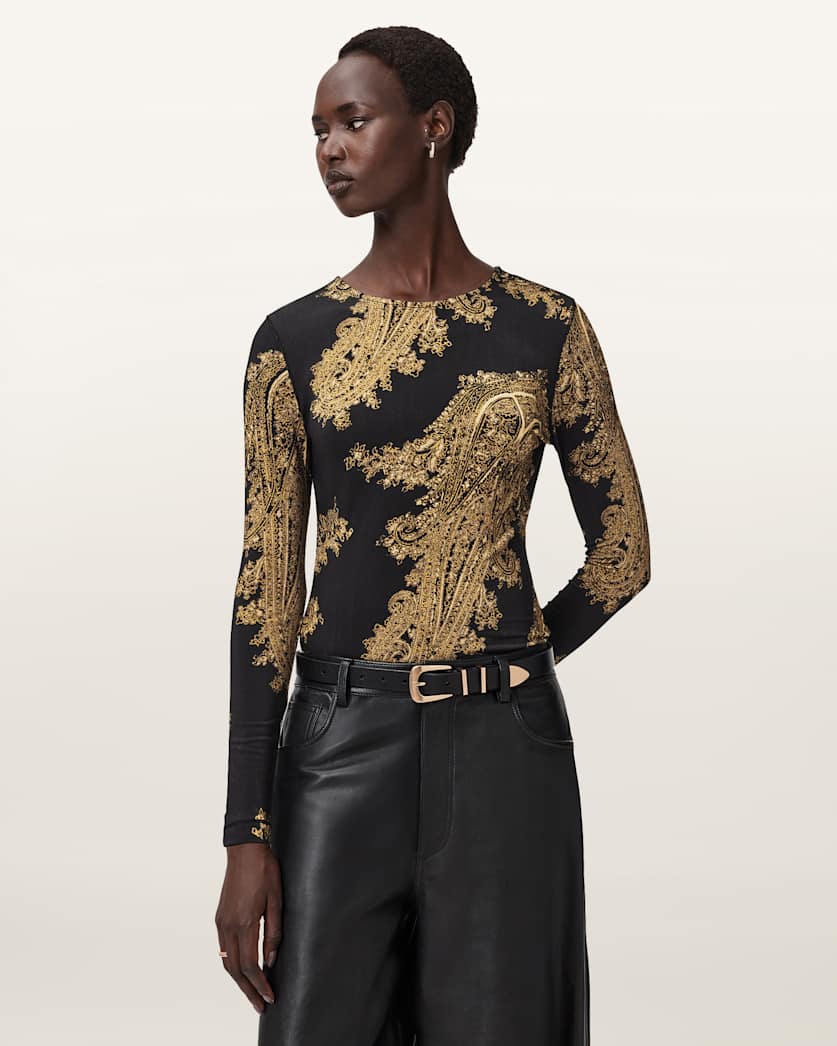A top that is the very definition of smart casual, the Katlyn is a new season print made to be worn with leather pants.