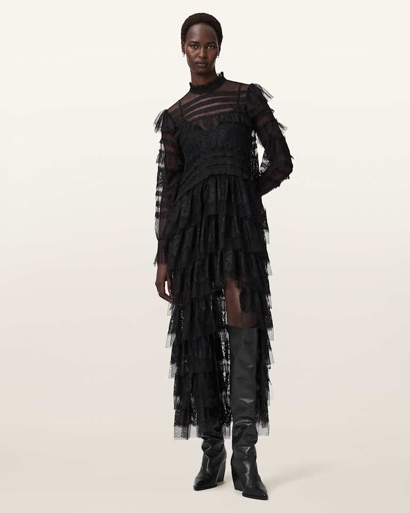 We're thinking... ruffles... and lace. The Cavarly Dress amplifies that feminine feeling, only this time with a gothic twist. A bit of drama, but always playful, this statement dress goes from season to season.