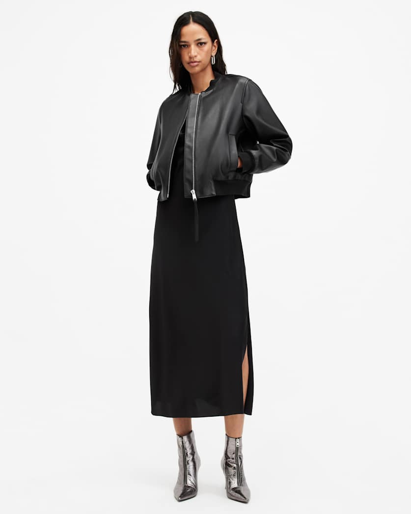 Bomber jackets are back – the Orten keeps things classic. It's crafted from an innovative cactus-based biomaterial called Desserto®. The shape is an authentic silhouette with ribbed trims that keep the sporty aesthetic intact. Casually cool, with an AllSaints twist – this updated favourite is perfect for day-to-night styling.