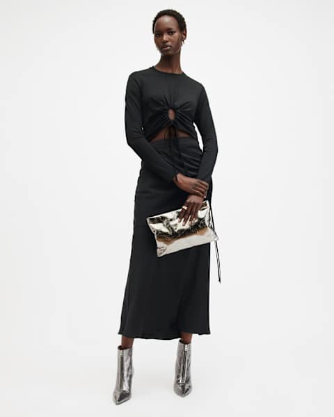 A sultry wardrobe staple, this is the Alexia. Cut to a classic regular shape with an elegant drape, this maxi-length skirt features refined drawstring ruching at the hip.