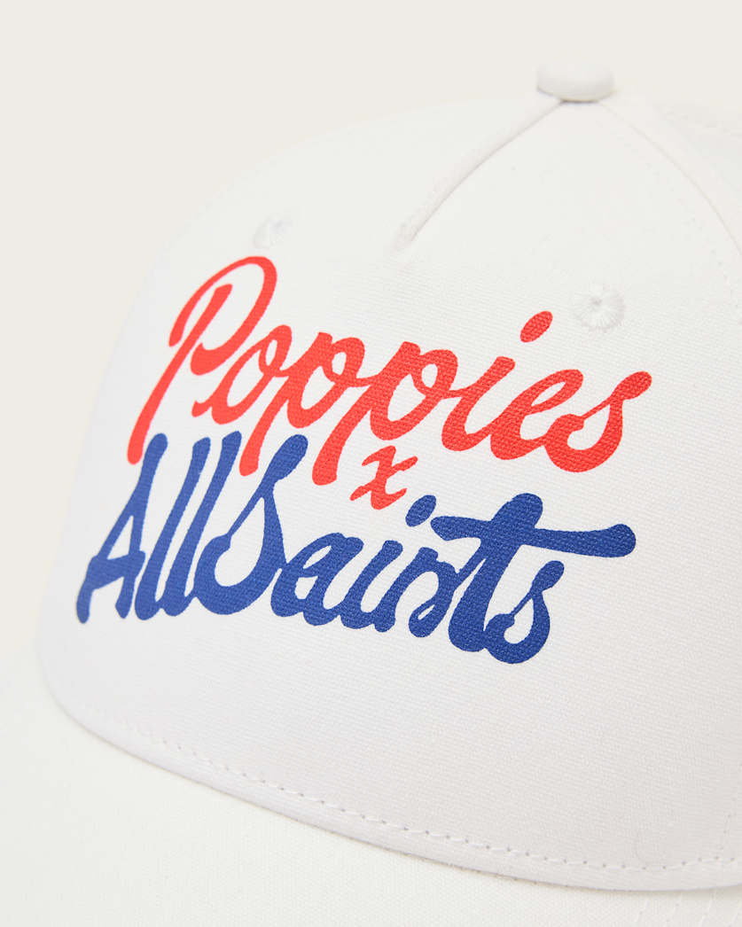 Two Spitalfields originals unite to bring you a cap that's sure to be a staple in your rotation: introducing the AllSaints X Poppies Baseball Cap, as part of our collaboration with the iconic London fish and chips shop. Crafted from organic cotton with an adjustable leather strap, this special edition design features both our logos printed together.