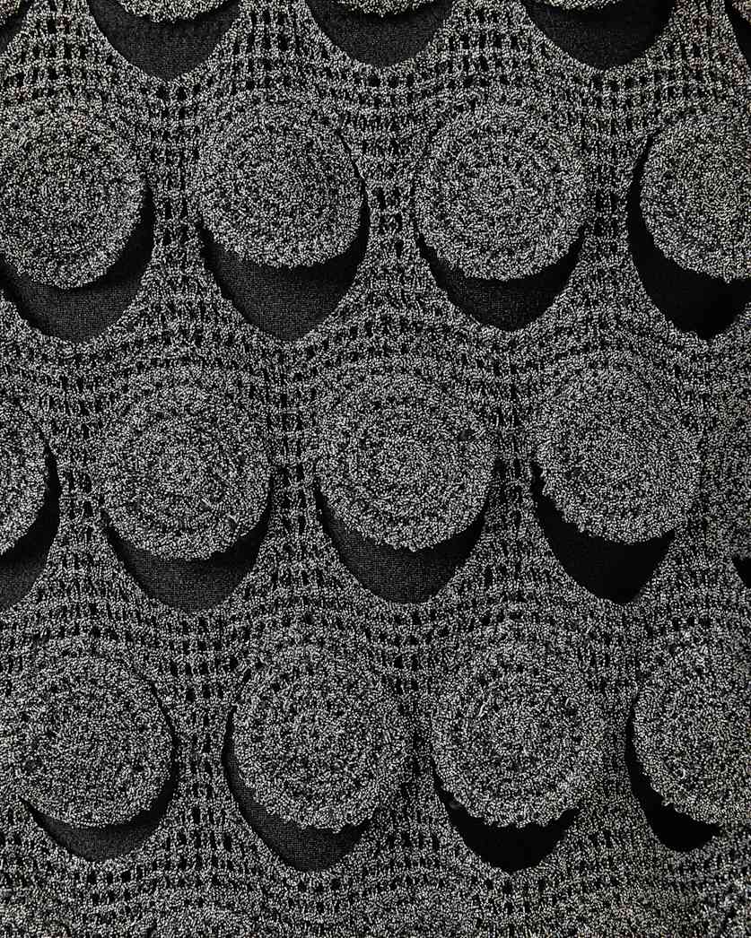 - Trim: 60% polyester, 20% viscose, 12% polyamide, 6% metallised fibres, 2% elastane