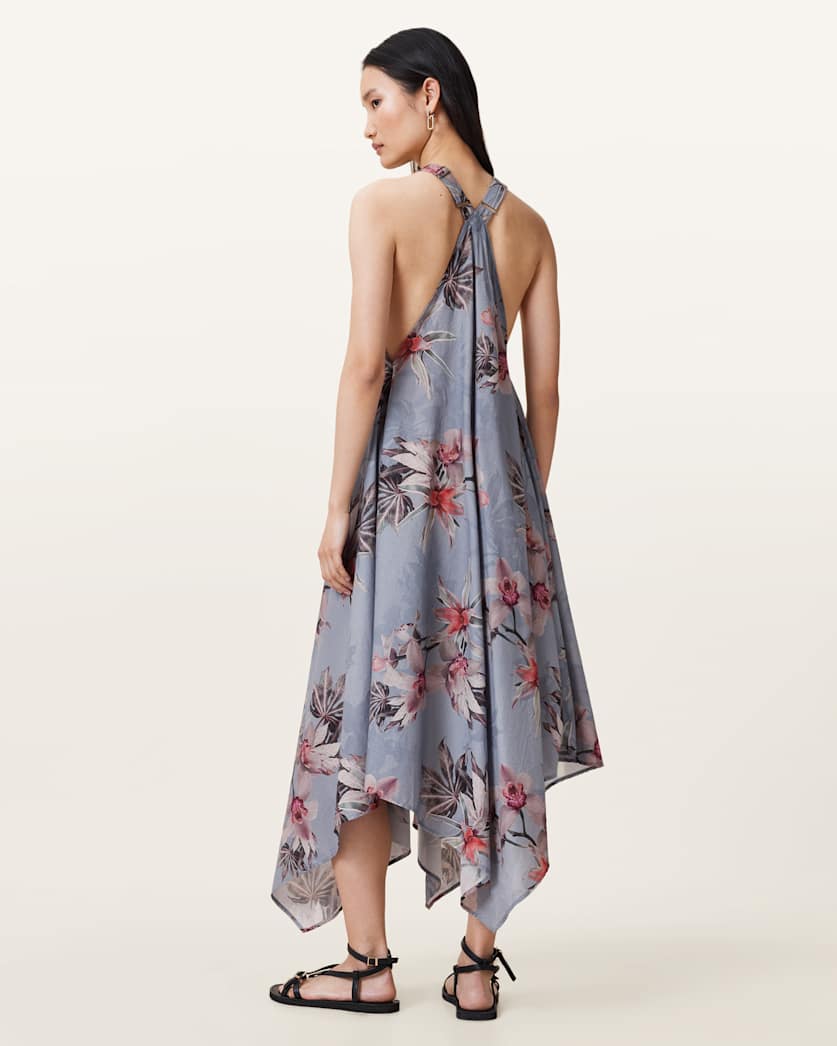 Florals by the sea? It can only be an AllSaints beach dress. Our new Lil is defined not only by its statement flower print, but the asymmetric A-line silhouette. Together with a straw hat, your favourite sunnies and some sandals, your beach attire just got a lot more chic.