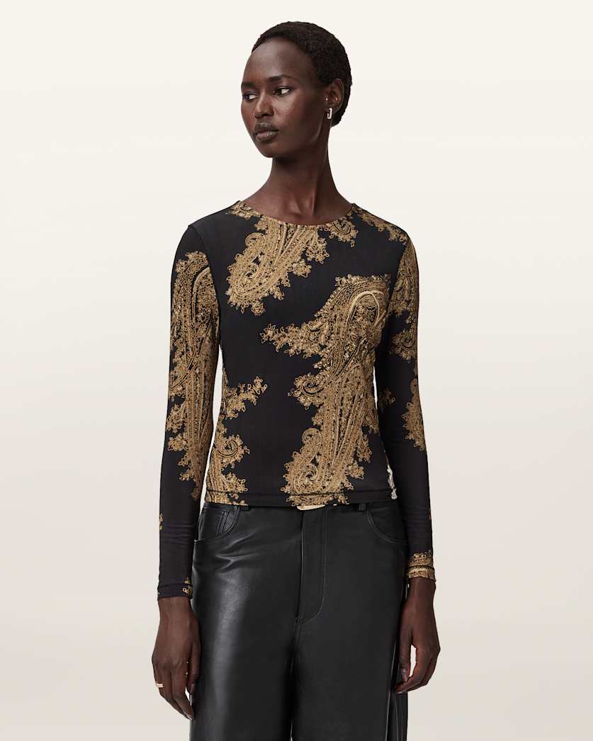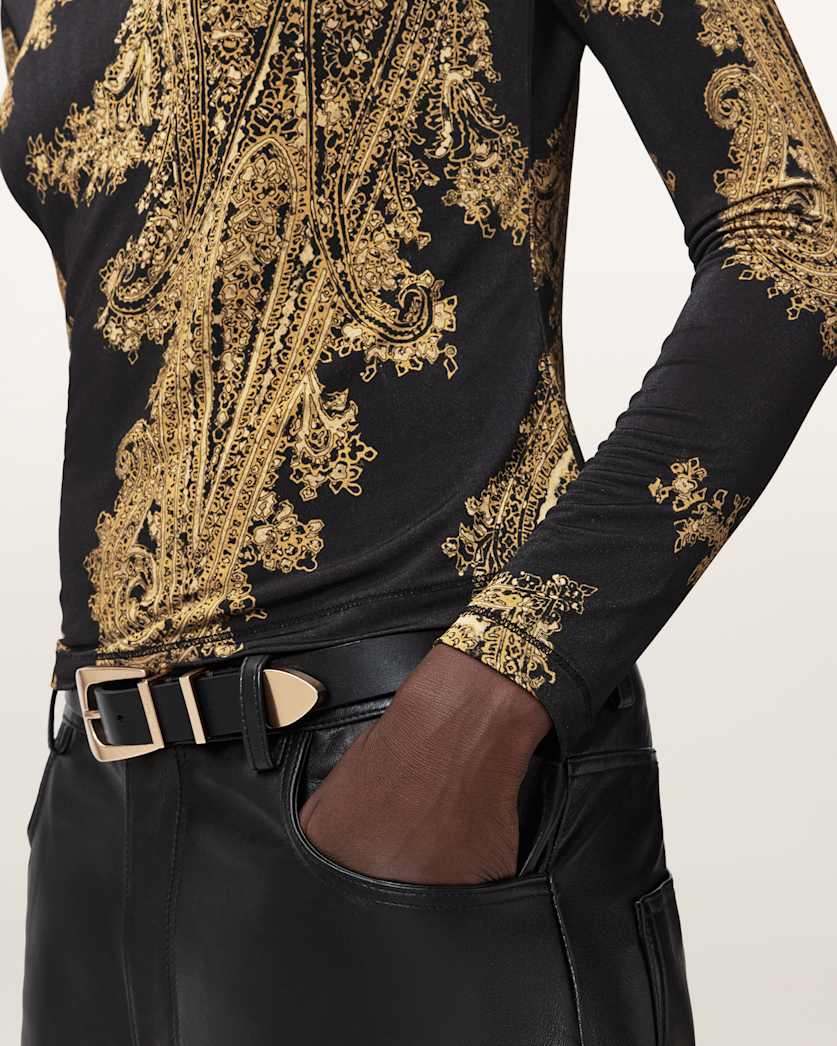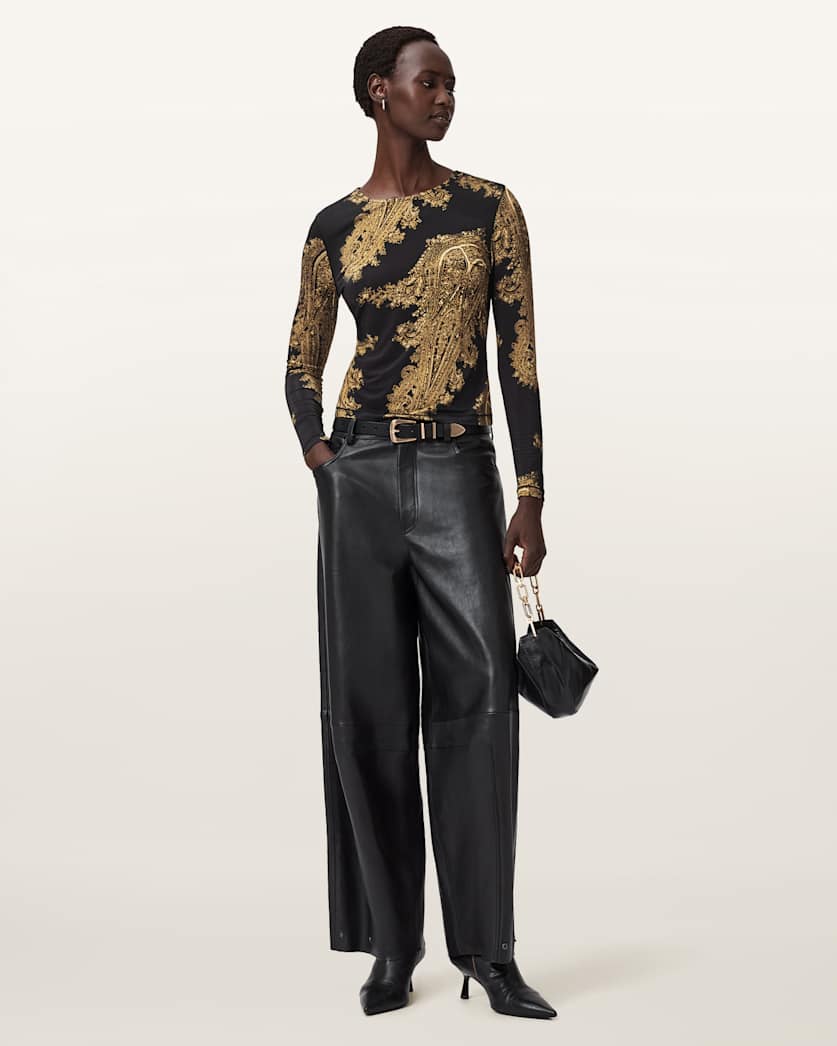 A top that is the very definition of smart casual, the Katlyn is a new season print made to be worn with leather trousers.
